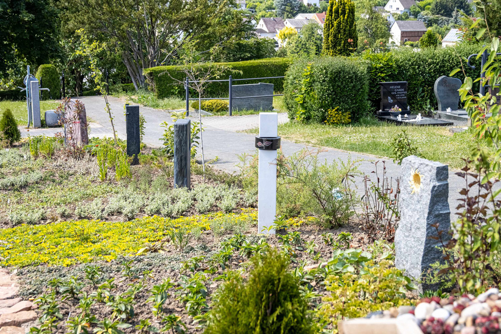 Zusammen mit der Friedhofsverwaltung Aßlar und der Treuhandstelle für Dauergrabpflege Hessen-Thüringen GmbH realisierten der Gartenbau Betrieb Nobbmann und die Steinmetze Fichtner, Schulz und Zimmermann den Memoriam-Garten auf dem Friedhof Aßlar.